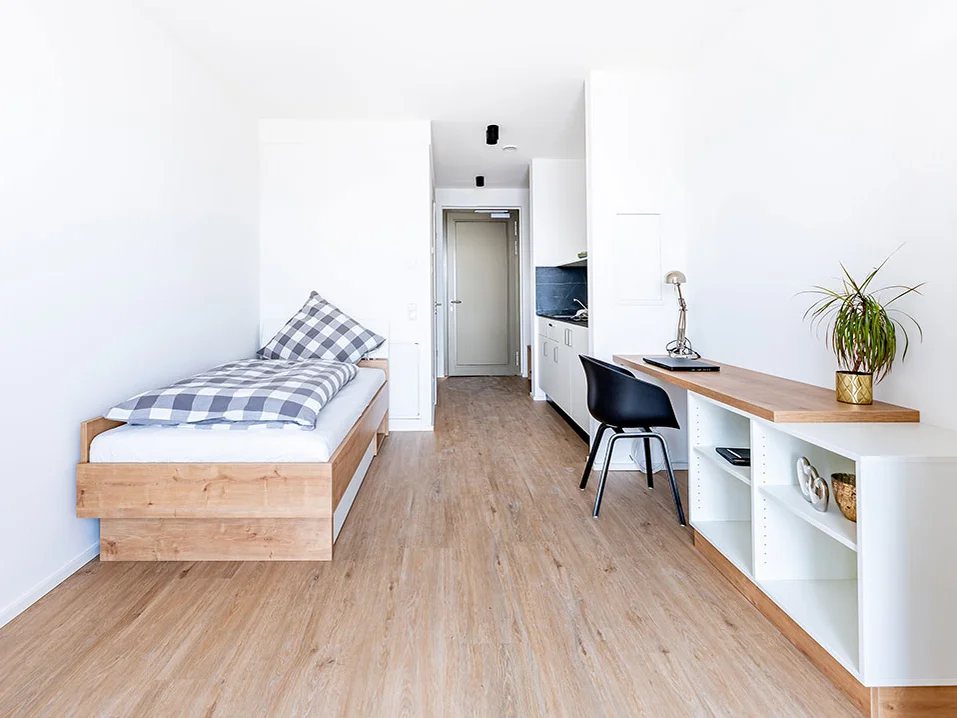 The student residence at Persiluhr offers centrally located, fully furnished single apartments and rooms in shared flats. Apartments have their own kitchen and bathroom, while rooms in shared flats have communal areas. Internet and utilities are included — ideal for everyday student life.